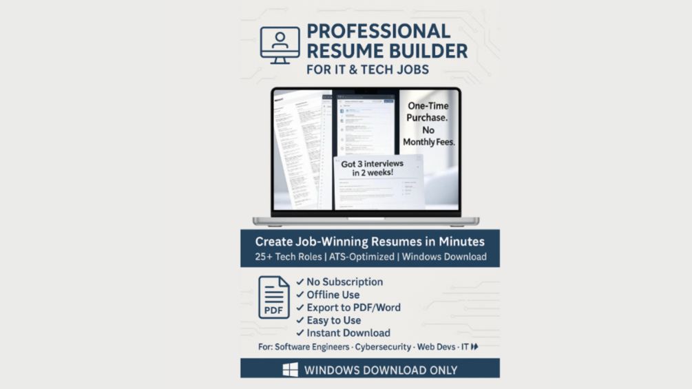 IT Resume Builder – Tech Job Templates | ATS-Friendly | Windows | Instant Download | No Subscription | Easy to Use